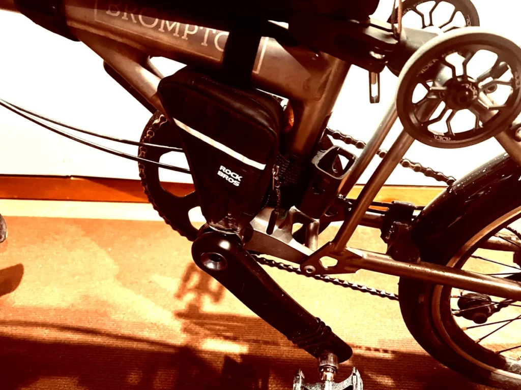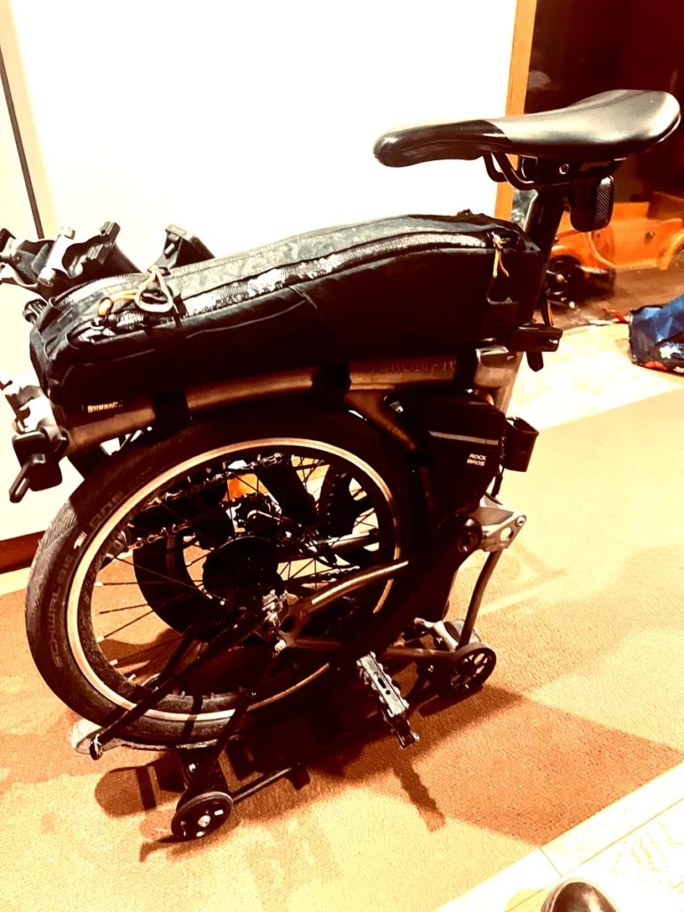 - ポイント:Brompton専用設計のため、T Lineのフレーム三角部にジャストフィット。折りたたみへの干渉もほぼゼロ。3D Bike Modsのものも試しましたが、T Lineへの収納力と安定性でRockbrosに軍配が上がりました