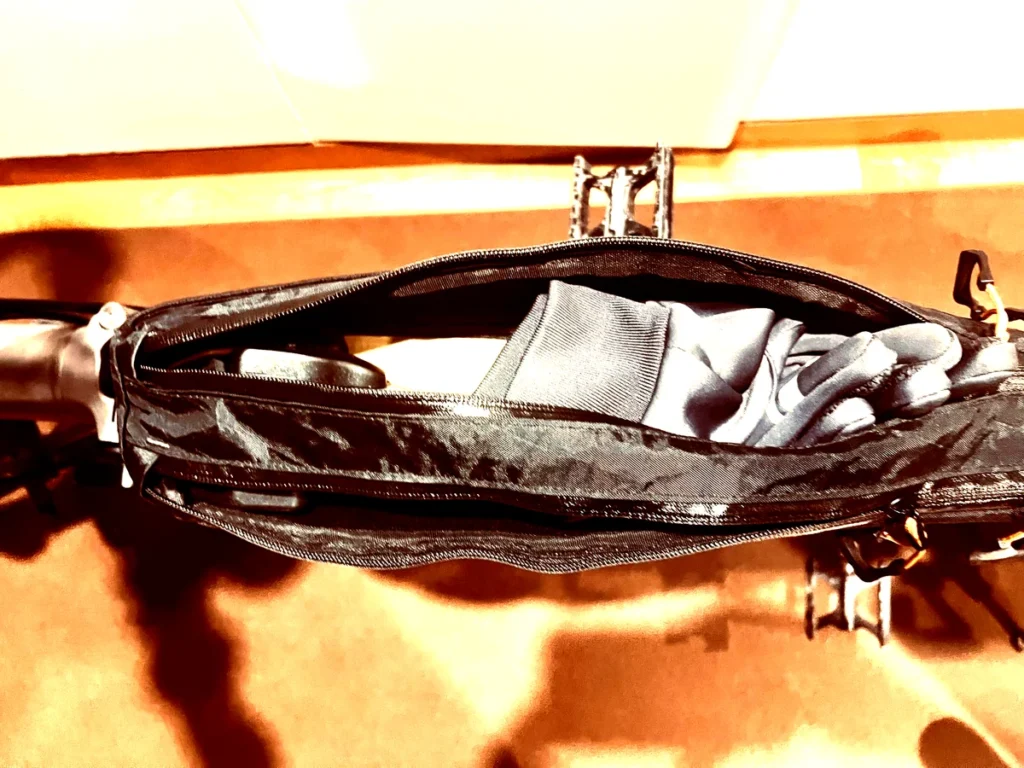 - 主な収納物:サイクリング手袋、着替え(薄手)、補給食、スマホ(防水ケース経由)