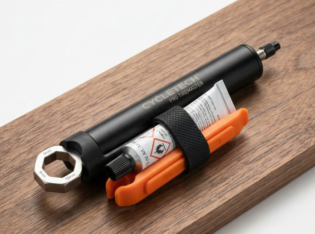 - パンク修理キット(タイヤレバー・パッチ・ゴムのり):旅先での突然のパンクに備える最重要アイテム